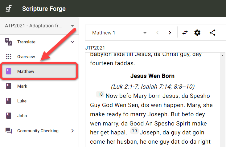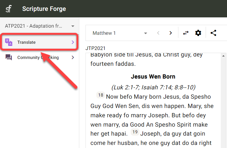 1. Klicke auf die Scripture Forge-Navigationsleiste: