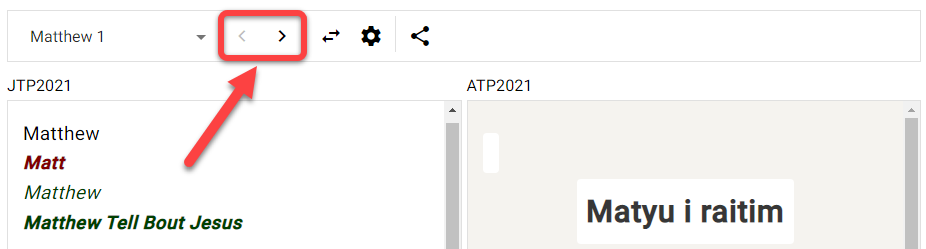 Jetzt, da Du verstehst, wie Du in Scripture forge navigieren kannst, ist es an der Zeit zu lernen, wie Du Übersetzungsvorschläge verwenden kannst. Denke daran, Übersetzungsvorschläge sind, wenn Scrpture Forge Deine Übersetzungsarbeit analysiert und automatisch Wörter/Begriffe vorschlägt, die im Übersetzungsprozess verwendet werden sollen.