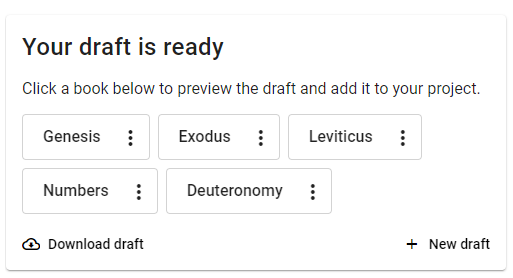 - Puede añadir todo el libro navegando a "Generar borrador" y encontrando el borrador que se ha generado. Haga clic en el menú de 3 puntos disponible junto al nombre del libro que desea añadir y, a continuación, haga clic en "Añadir al proyecto". Esto añadirá todo el libro a su proyecto