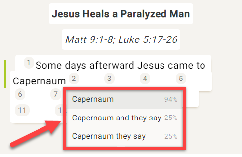 Por ejemplo, si se resaltara "Capernaum y dicen":