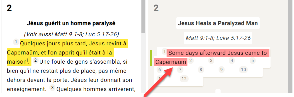 • The more verses that you have in both the source and target, the better the suggestions will be.