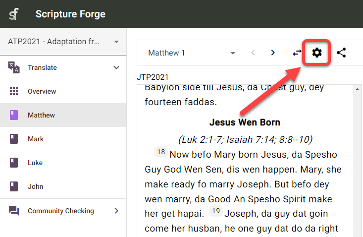 • Translation suggestions are based on Scripture Forge analyzing verses in the target project that have already been translated from the source project.