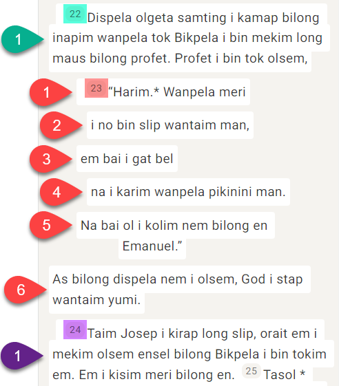 In this next passage, there are 8 total segments (note: verse 23 has 6 segments):