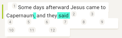 In Scripture Forge, a segment is a section of Scripture to be translated. This can be a section heading, a verse, or a part of a verse (like in poetry).