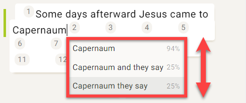 1. When Scripture Forge shows you translation suggestions, you can use the Up and Down arrow keys to highlight the suggestion that you want.